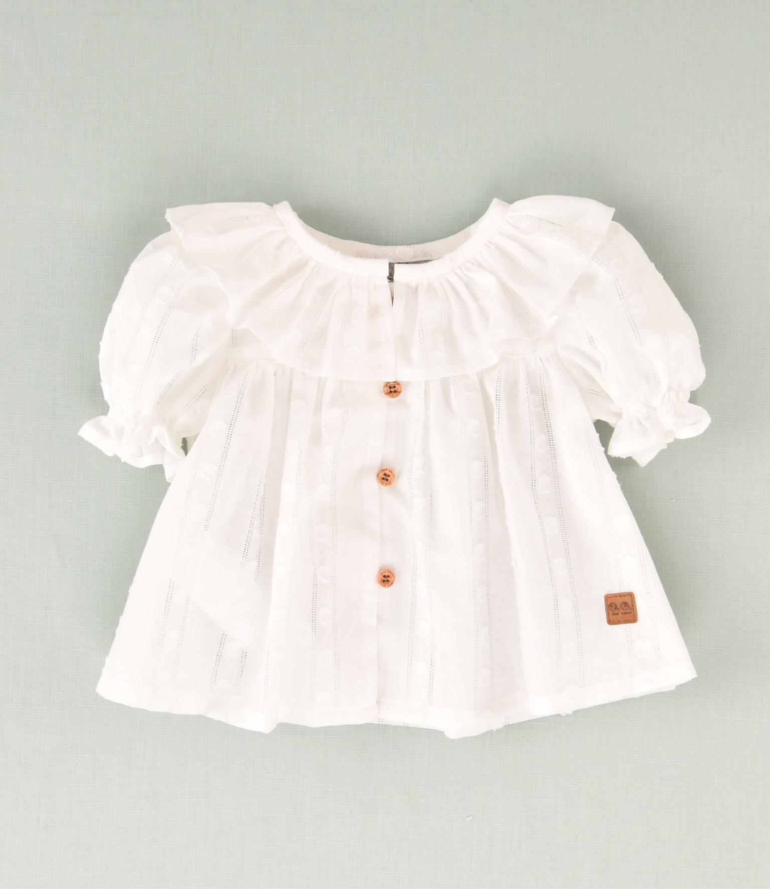 Te presento nuestra camisa de niña con motas en blanco, una prenda encantadora que combina elegancia y frescura. Su diseño ligero y cómodo la hace perfecta para cualquier ocasión, con un toque sutil y moderno que nunca pasa de moda. Confeccionada con materiales de alta calidad, garantiza suavidad y durabilidad.
