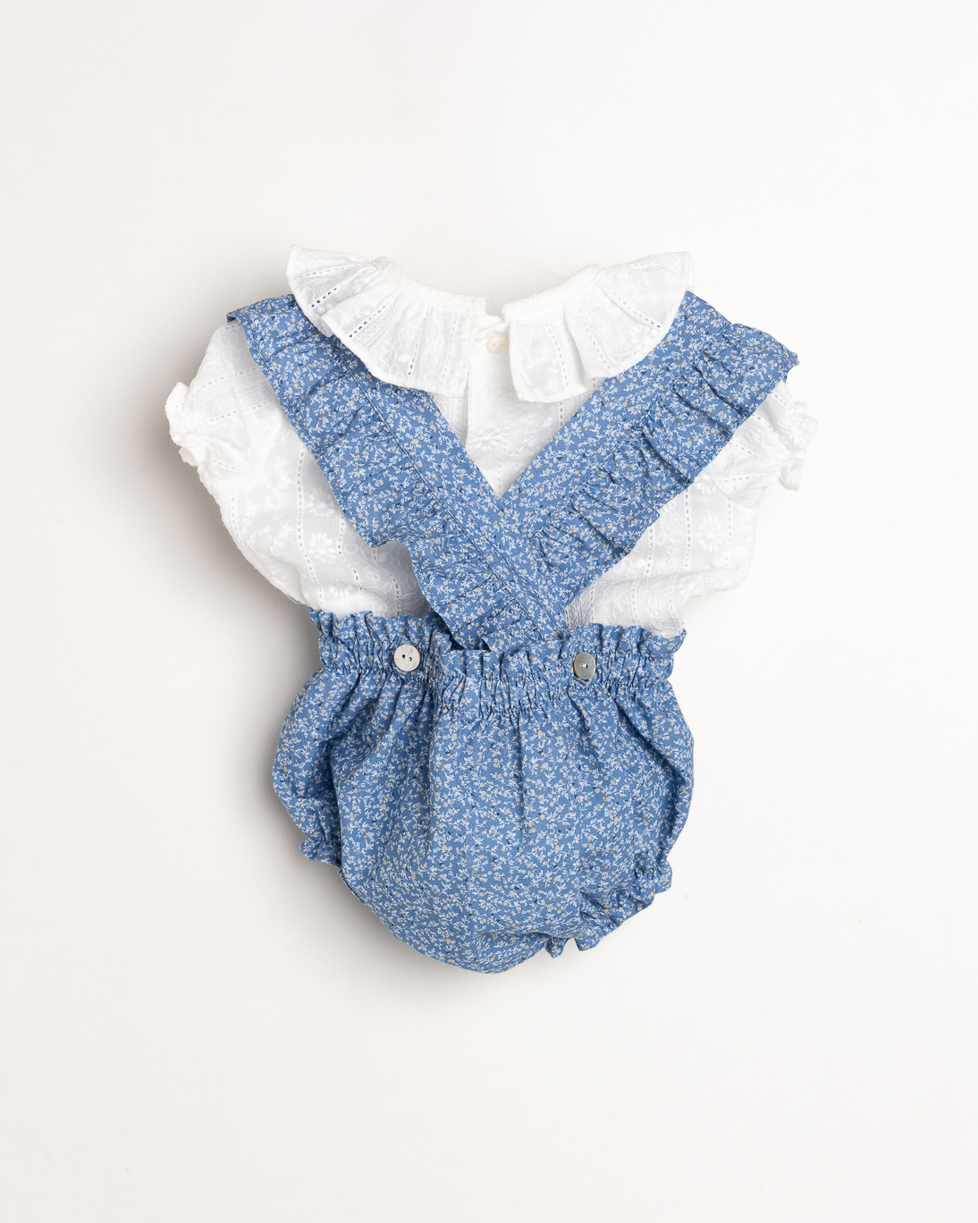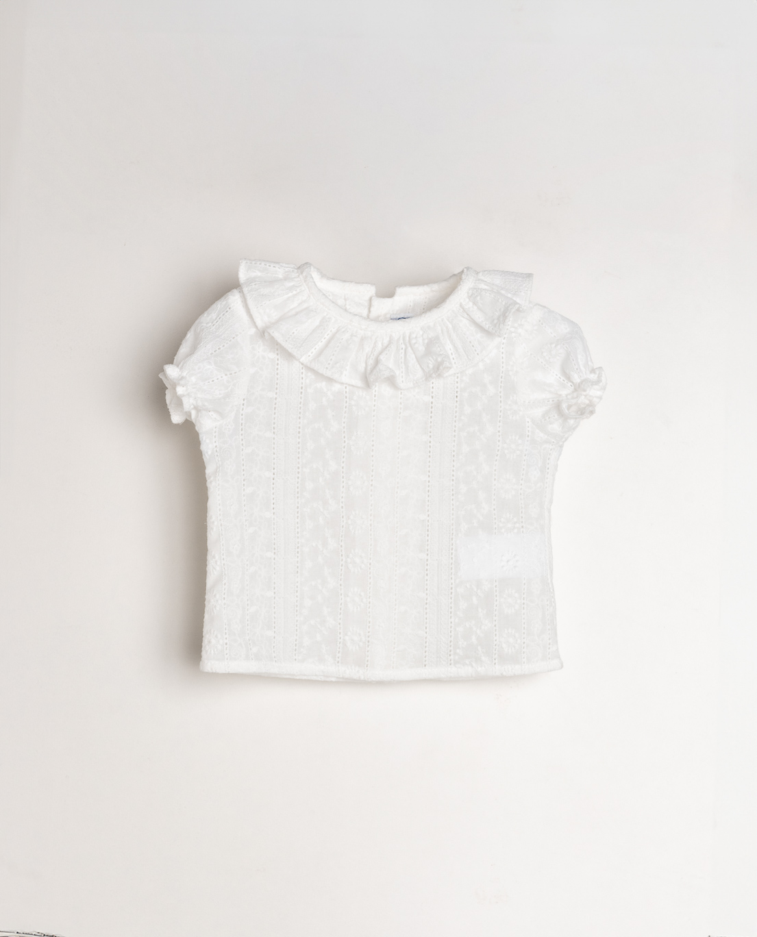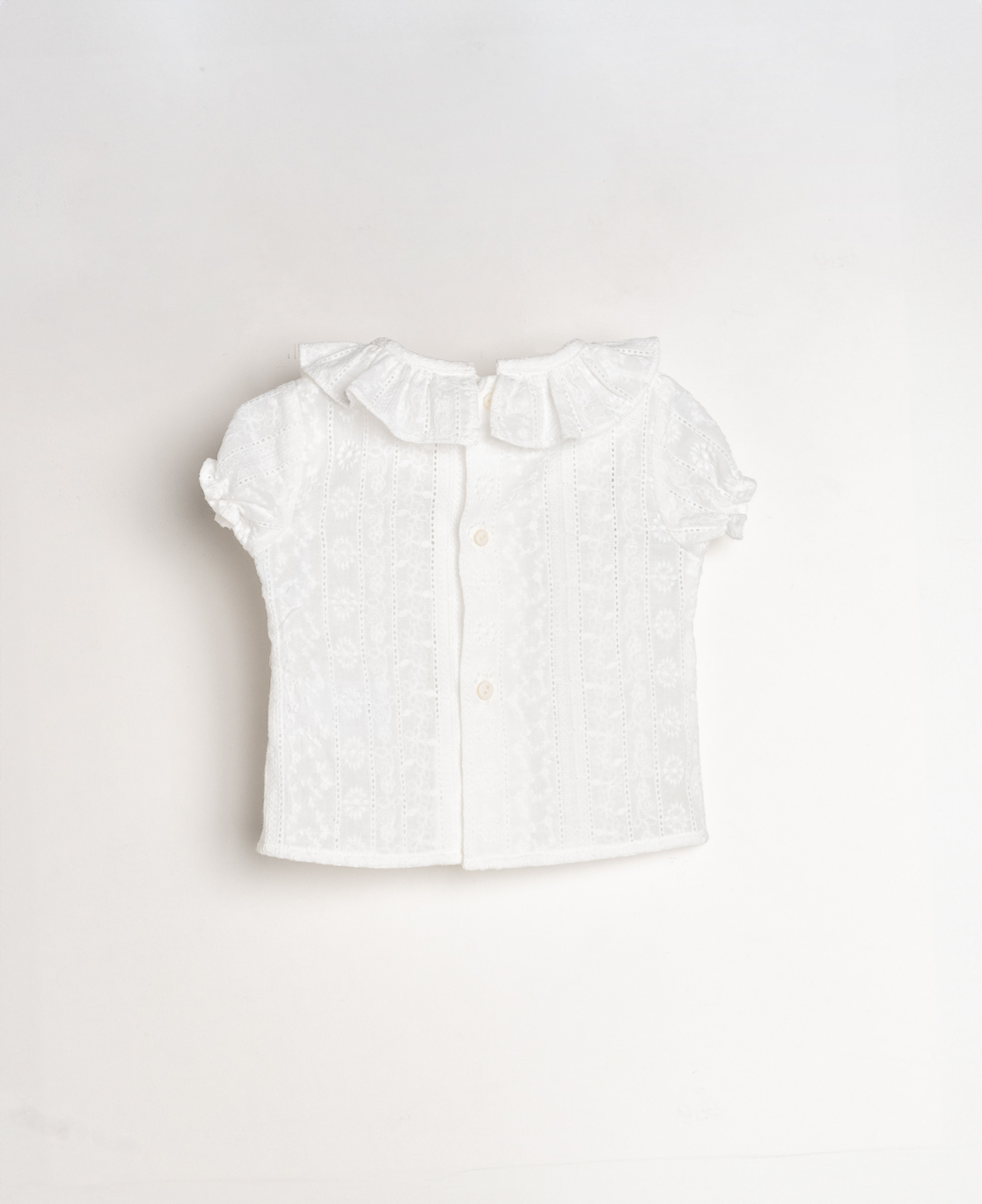 Fácil de combinar con braguitas, ranitas, faldas o pantalones, esta camisa se convierte en una prenda clave para crear looks delicados y elegantes con un estilo tradicional renovado. Ya sea para una ocasión especial o para el día a día, es una pieza que transmite frescura, cuidado y ternura en cada detalle.