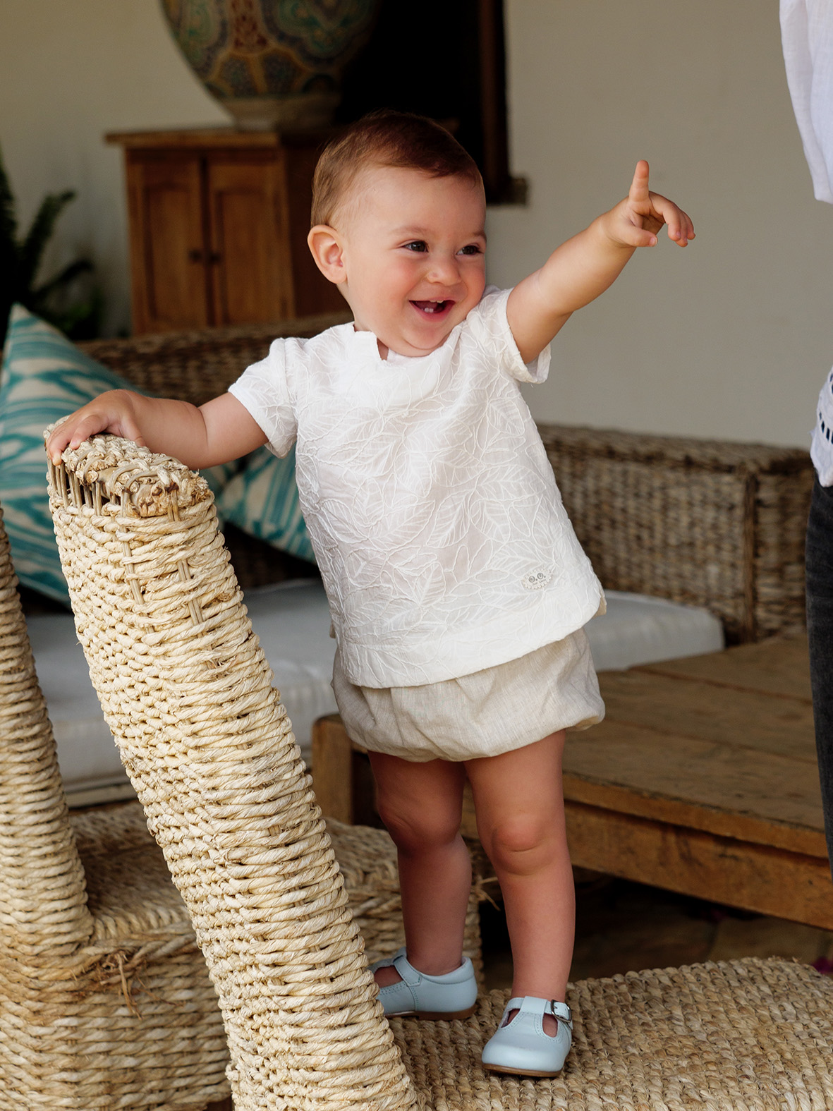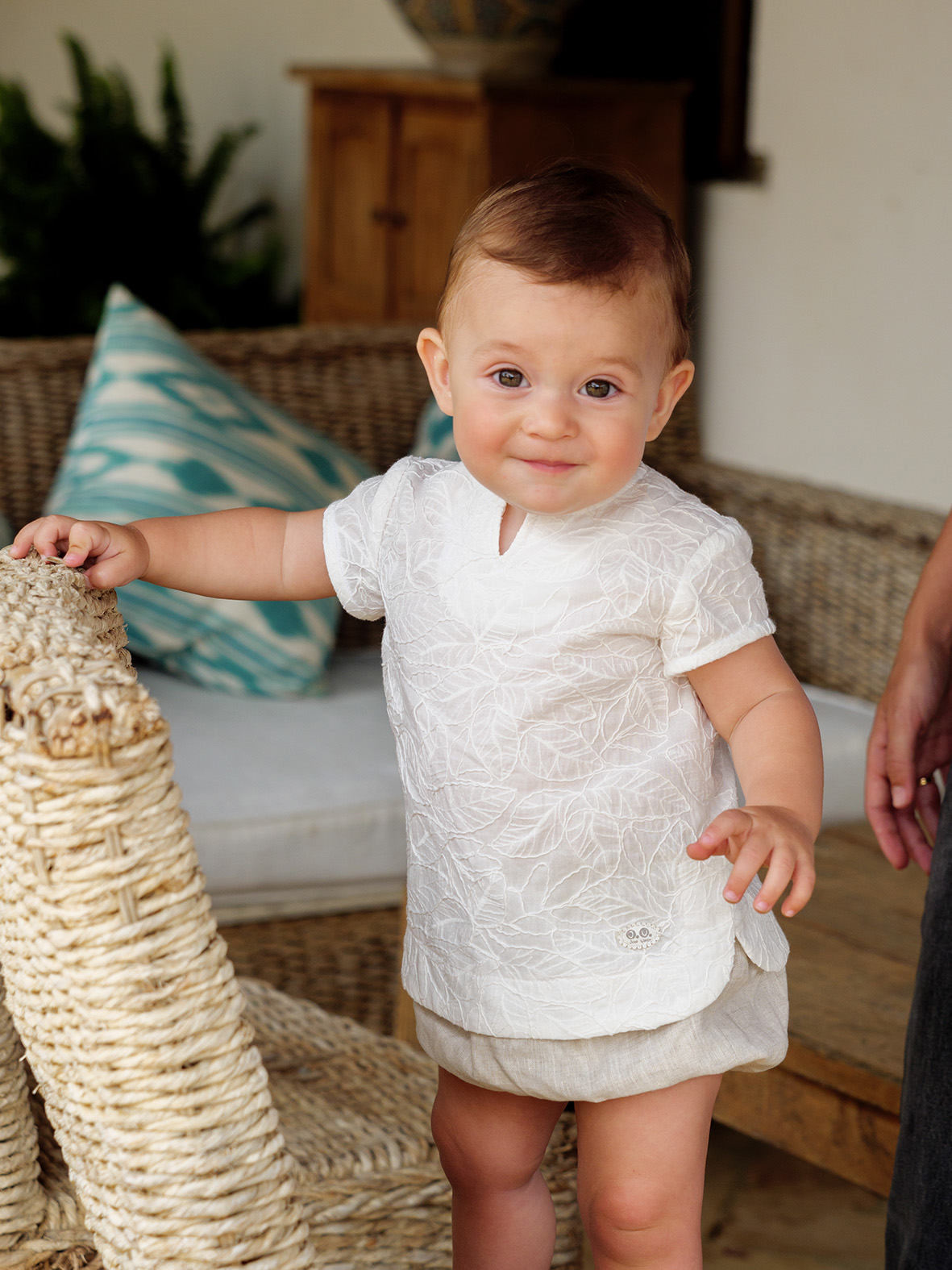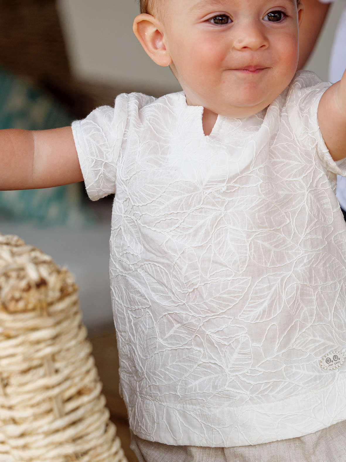 Este adorable conjunto de dos piezas para niño es la opción ideal para vestir a tu pequeño con estilo y comodidad. La camisa, de corte clásico y elegante, está confeccionada con materiales suaves y ligeros, perfecta para mantener a tu bebé fresco durante el día. El cubrepañal a juego asegura total confort y libertad de movimiento, mientras complementa el conjunto con un toque de dulzura y estilo.