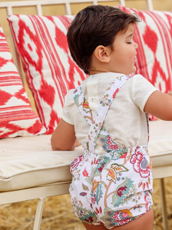 Este conjunto de bebé con cubrepañal con tirantes es la combinación ideal de comodidad y estilo. Diseñado para que tu pequeño se sienta libre y fresco, es perfecto tanto para el día a día como para eventos especiales.