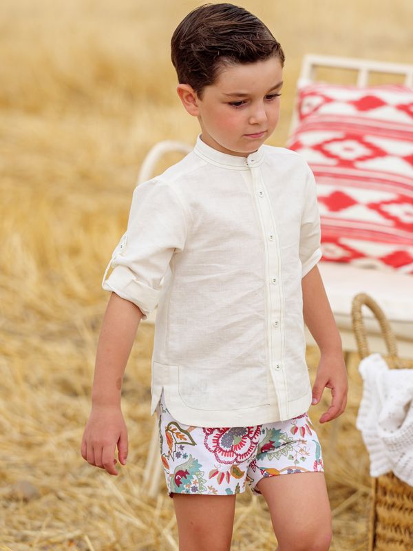 Si quieres que tu niño marque tendencia con un look moderno y elegante, este conjunto de pantalón corto y camisa de manga larga es justo lo que necesitas. Perfecto para cualquier ocasión, desde un evento especial hasta un paseo, combina comodidad y un toque sofisticado sin perder frescura.