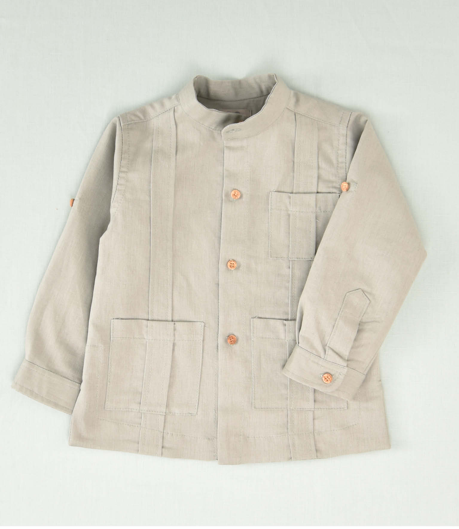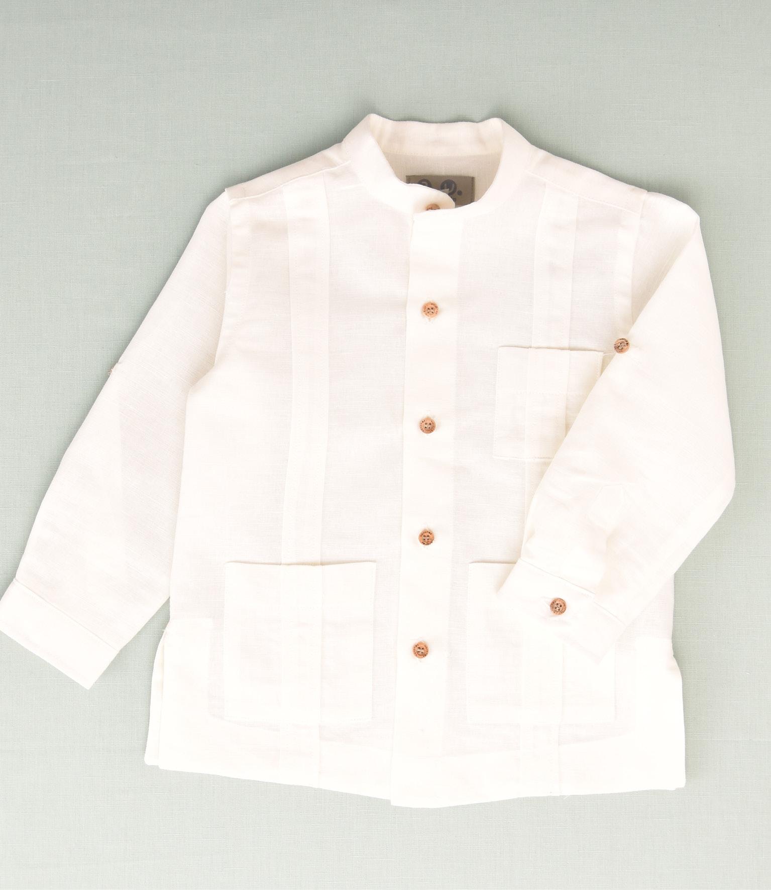 Imagina a tu pequeño con una guayabera de manga larga de lino, perfecta para cualquier ocasión especial o un día soleado con mucho estilo.