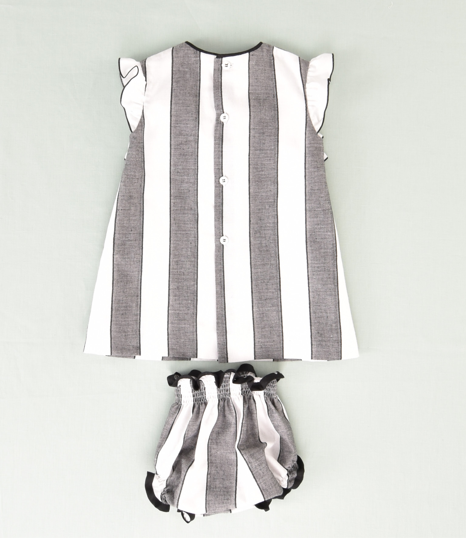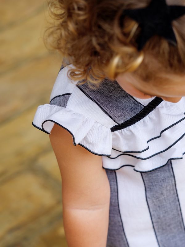 Si buscas una prenda elegante y sofisticada para que tu pequeña brille en momentos importantes, este jesusito de rayas negras es la elección ideal. Su diseño exclusivo combina distinción y dulzura, convirtiéndolo en una opción perfecta para eventos especiales.