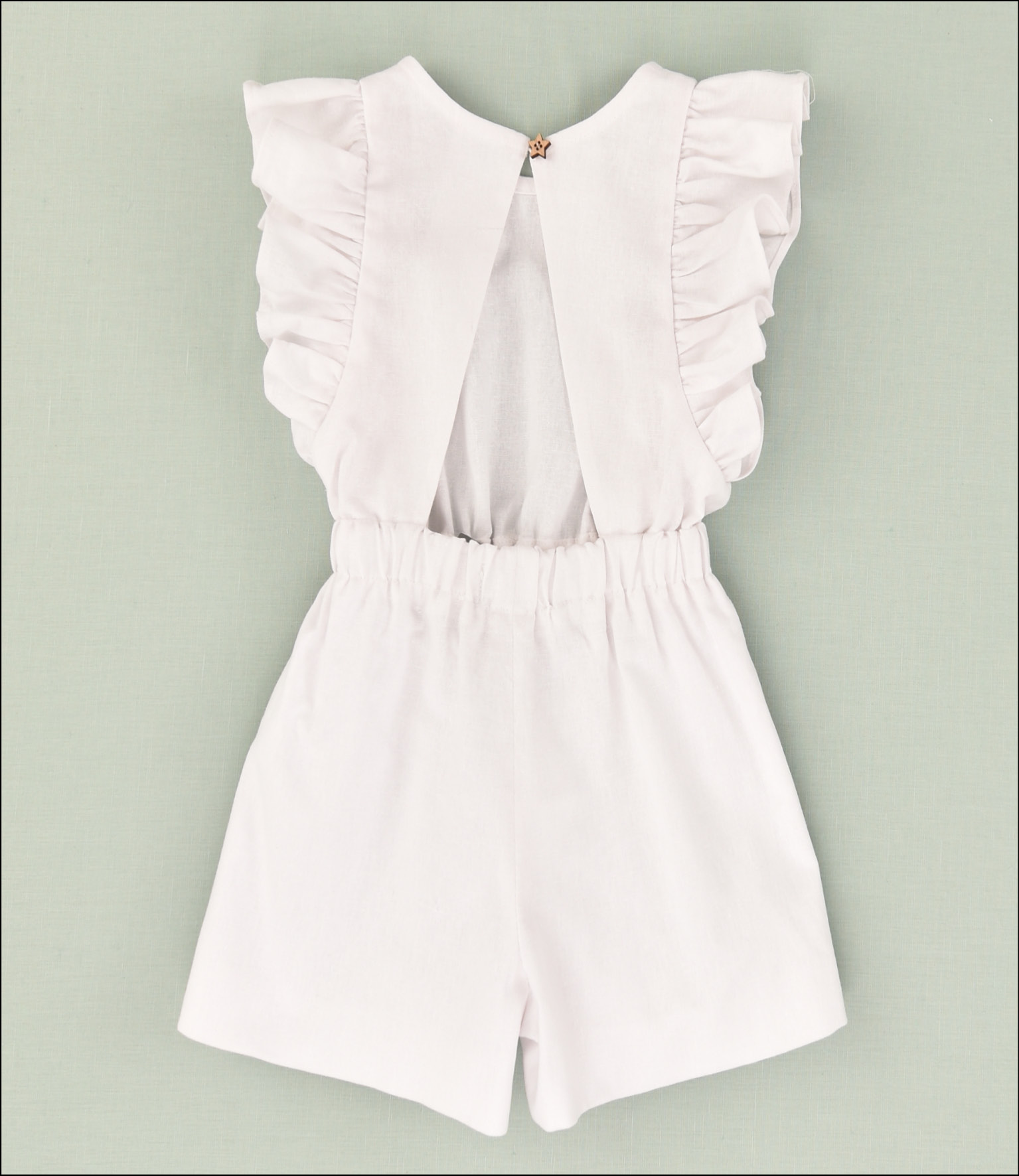 ¡Haz que tu niña luzca radiante y cómoda con este mono corto de lino! Con su espalda abierta y su diseño moderno, será su prenda favorita para disfrutar del verano.
