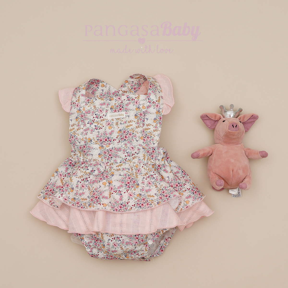 Este pelele de flores con falda en tono rosa empolvado es una prenda imprescindible para la ropita de tu bebé. Con su hermoso diseño floral y delicada falda, es perfecto para cualquier ocasión especial o para un look bonito y cómodo en su día a día.