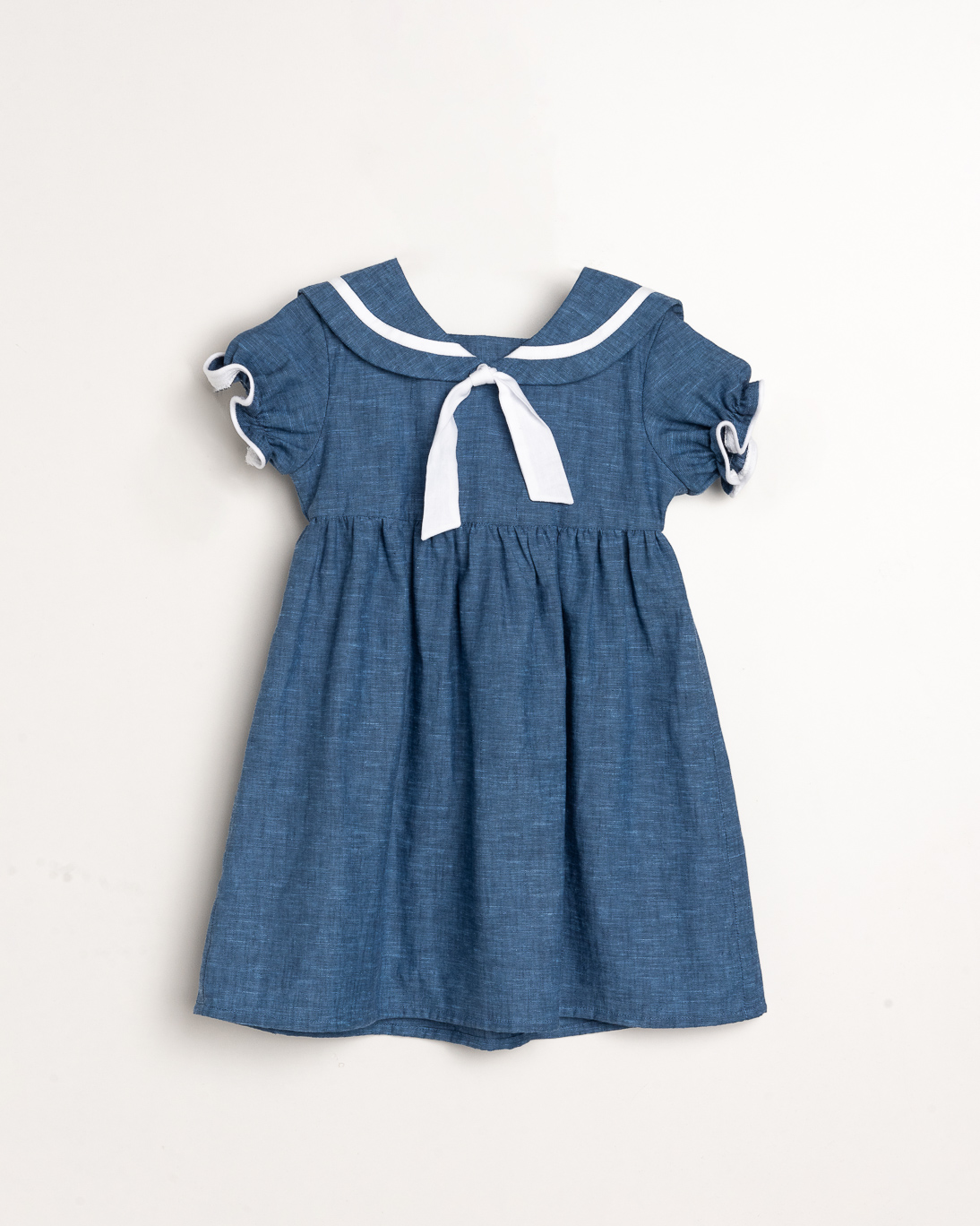 Este vestido tiene un diseño clásico y elegante, perfecto para que tu niña luzca adorable y sofisticada. El color azul profundo es muy versátil, mientras que el cuello marinero blanco le da ese toque especial y atemporal. El corte es muy favorecedor y cómodo, ideal para cualquier ocasión especial o incluso para un día de paseo.